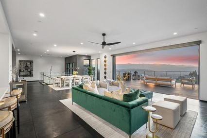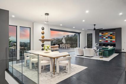 At the heart of the home, the great room brings together a chef's kitchen with top of the line Wolf & Sub-Zero appliances, custom cabinetry, expansive island with marble countertops, and a newly built out spacious 2nd chef's kitchen with additional storage. The adjacent dining room invites shared meals that spill naturally onto the spacious terrace framing a breathtaking view.