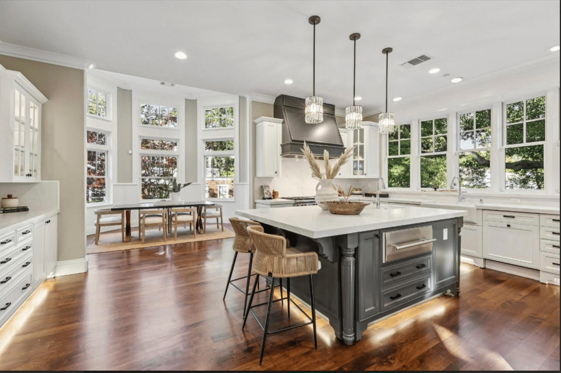 From the moment you arrive, the home’s attention to detail is undeniable. The individually hand-shingled exterior, double-hung windows, and extensive crown molding speak to the level of artistry that defines this property. Inside, walnut flooring flows throughout, setting a rich and elegant tone.