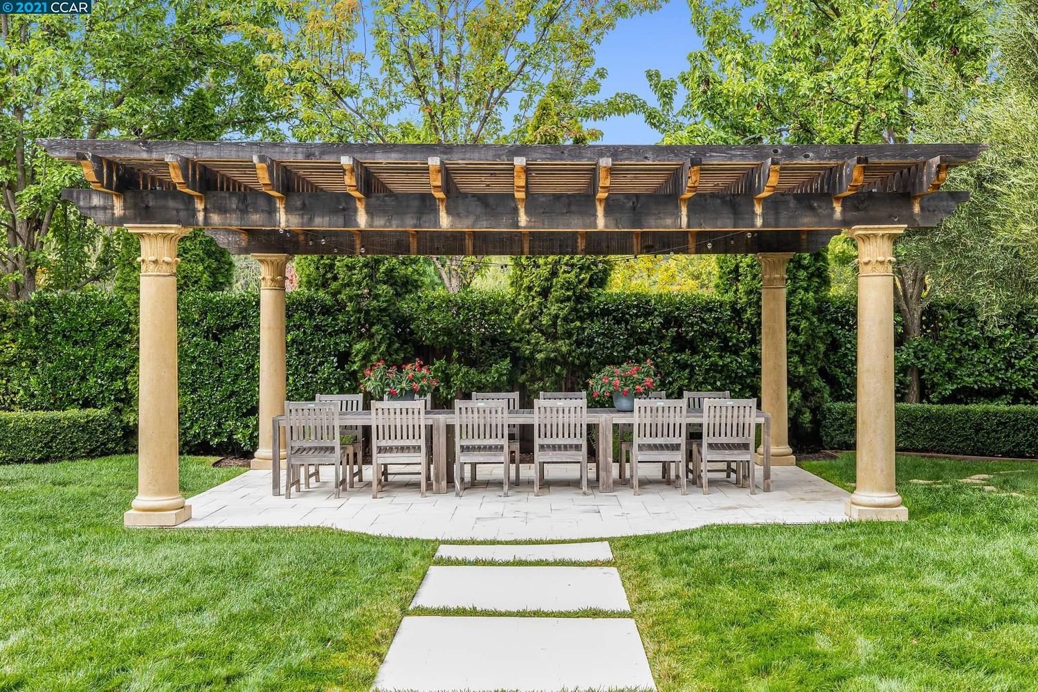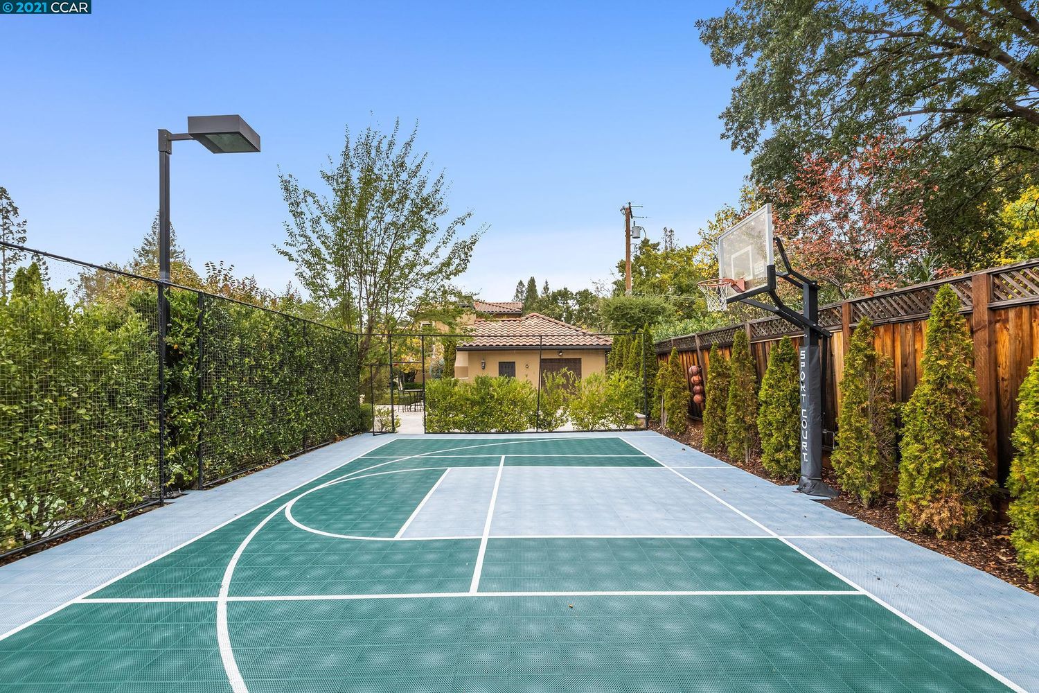 It has a resort like yard w/pool, spa, covered loggia, outdoor kitchen, fireplace, sport ct, putting green & room to play!